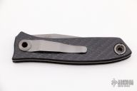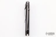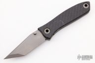 This linerlock flipper by Warren Thomas features a chisel ground titanium blade with carbide edge and single thumbstud. The handle has a bead blast finish titanium liner, with carbon fiber scales. Lanyard hole in pommel. Has a couple light scuffs, great condition otherwise.
