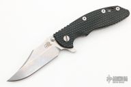 This XM-18 Bowie Flipper by Rick Hinderer Knives features a 3.5" stonewashed blade, notched thumbrest and flipper, dual thumbstuds. The handle has a black G-10 scale (comes with a blue G-10 scales also), and stonewash finished titanium handle/clip, titanium liner. Clip can be mounted for tip up or down carry. Nice lockup, seating, and detent. Excellent condition. Comes with a zippered case.