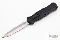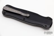 The Pagan from Benchmade features a stonewashed, chisel ground spear point blade. The handle is comprised of milled and black coated aluminum. Includes original box, papers and MOLLE compatible nylon sheath. Has a couple light scuffs, otherwise excellent condition.