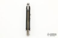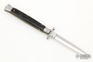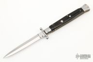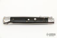 This 11" Swing Guard Auto by Frank Beltrame features polished dagger ground blade with false top edge. The handle has stainless steel bolsters, front and rear, buffalo horn scales, brass liners, stainless spring. Excellent condition.