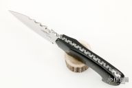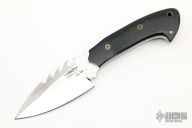 Gil Hibben lives and works in LaGrange, Kentucky. He began making knives part-time after his discharge from the Navy in 1956. He sold his first bowie knife for $45 and that sparked his long and famous career as a professional knife maker. While living in Seattle, WA after his Navy discharge, Gil worked as a machinist for Boeing Aircraft and learned a lot about metals and their properties. In 1964, while living in Salt Lake City, Utah, Gil started making knives full time. This was also the year Gil started making knives from the relatively new 440C steel. Although it is the industry standard now, Gil believes he was the first custom knife maker to use 440C. Hibben has been a full time custom knifemaker since 1957. Over the years Gil achieved fame as a premier custom knife maker and his work has been featured in, and on the covers of, national gun and knife magazines. He has established a whos-who following of collectors including John Wayne, Elvis Presley, Steve McQueen, Sylvester Stallone and Steven Segal or world leaders such as Israel's Defense Minister Moshe Dayan, the Sultan of Brunei and Vice-President Dan Quayle. He has taught and influenced some of the other legendary knife makers such as S.R. Johnson, Harvey Draper and Buster Warenski among countless others. Hibben designed the first line of Browning hunting knives in 1968, the American Kenpo Knife for Ed Parker. Gil's fame dramatically increased in 1988 when Sylvester Stallone, who had purchased several of Gil's custom knives for his own collection, asked Gil to design the now famous knife used in the movie Rambo III. Inducted into the Blade Magazine Cutlery Hall of Fame in 1990.