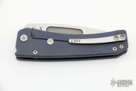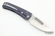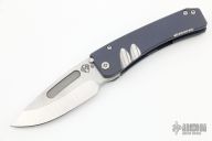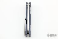 This Midi Marauder from Medford Knife and Tool features tumble finished drop point blade with fullers.  The handle has a blasted and anodized titanium frame with a satin tip up clip over satin barrel spacers.   Excellent detent, lockup, and seating. Original case and papers.  Has a couple light scuffs, excellent condition otherwise.