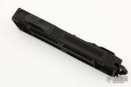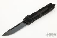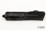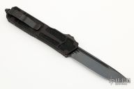 The Microtech Scarab II is a high quality tactical out-the-front knife, based on the original Microtech Ultratech design. Built to withstand the extreme, the Scarab II excels in high-intensity covert operations. The Scarab II is designed for a broad spectrum of utility and close quarter combat applications for use by qualified law enforcement, military, and government agency operatives. The Scarab II is fabricated to the highest possible standards to assure reliability and safety with its use. Featuring a one-handed, open and close, dual-action out-the-front (OTF) design, and double edge blade. The Scarab is produced with a large easy-to-grip handle that contains non-slip grip inlays on both sides. Comes with original box and papers. Has a small mark on the clip, otherwise excellent condition.