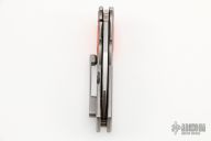 Other elements you won't often see in other contemporary production folders are both a solid Ti backspacer and a one-piece billet milled Ti clip, also mounted into a recessed pocket for strength.