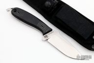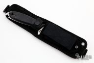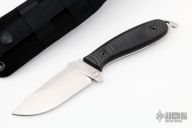 This knife by DPx Gear features a stonewashed blade with notched thumb rest designed as a wire stripper in the three most popular gauges, .185" blade stock and 1.445" blade depth, full tang construction. The handle has black G-10 scales. Pommel features lanyard hole, glass breaker, bottle opener. Includes nylon sheath. Excellent condition.