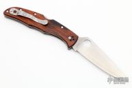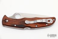 This Endura lock back folding knife by Spyderco features a satin finished HAP40/SUS410 blade, thumbhole and notched thumbrest. The handle has pakkawood scales with stainless steel backspacer and 4-way reversible stainless steel clip. Comes with original box and papers. Excellent condition.