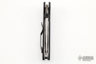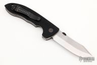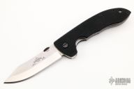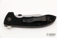 This Emerson Horseman linerlock flipper has a stonewashed blade with swedge, thumb disc, notched thumbrest and flipper. The handle is comprised of black G10 scales over titanium liners, black stainless steel clip. #0018. Excellent condition.  Comes with original box and papers.