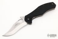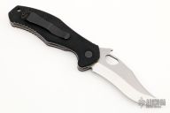 This Snake CQC-10 SF by Emerson features a stonewashed recurve blade with a thumbhole, notched thumbrest and wave feature. The handle has black G-10 scales, titanium liners, black tip up stainless steel pocket clip. Includes the original box and papers. Excellent condition. #324