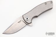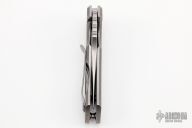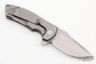 This ESV Flipper by Les George features a tumble finished Magnacut blade with notched thumbrest and a flipper. The handle has a stonewashed titanium frame and titanium pocket clip for tip up carry. Smooth function with a lock up and nice detent. New from maker! Comes with a zippered case.