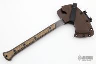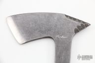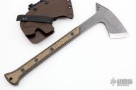 "The Cure" by Frank Landau features a stonewashed head with a spike at the rear, .264" blade stock, full tang construction with black/brown G-10 scales. Comes with a kydex sheath with TekLok. New from maker at the 2022 NCKS.