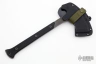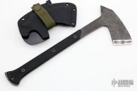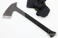 "The Cure" by Frank Landau features a hand forged head with a spike at the rear, forged finished flats, .264" blade stock, full tang construction with black G-10 scales. Comes with a kydex sheath with TekLok. New from maker at the 2022 NCKS.