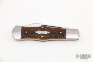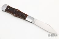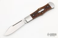 This Front Pocket Coke Bottle Prototype by Daniel Keown features a hand rub satin finished blade with nail nick. The handle has 416 stainless steel bolsters with integral liners, jigged bone covers, stainless steel spring, stainless steel pins. Has half-stop, flush in all positions. Comes with a zippered case. New from maker at the 2022 NCKS.
