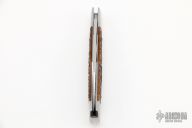 "As a young man I started wood carving and that led to my enjoyment of knives. One day while scrolling through YouTube I saw a video about a woodcarver named Ernest "Mooney" Warther. In the early 1900's he was unhappy with the knives commercially available and decided to make his own. With this particular knife not being made nor obtainable I set out on a quest to make my first slipjoint. As a specialty pipe welder I built my own belt grinder and got to work. My first knife was a fairly complex knife that had interchangeable blades, catch bits, and a little door held shut by an additional leaf spring. As crude as that first knife was, once finished, I was hooked. Building slip joints quickly became a passion of mine. I have been fortunate enough to have great mentors from the start. One mentor and heavy influence of my work has been Tom Ploppert. Much of what I do I strive to reach his level of quality. Personally, the knives that I'm interested in are complex or rare traditional Sheffield patterns. I also have a thing for orange blossom/lobster knives. It is a goal of mine to build some of these patterns. I tend to use a lot of natural material in my work leaning strongly towards ebony, mammoth ivory, ivory, and bone. I truly enjoy jigging all types of material and if I think the knife will benefit from it I will jig the scales."