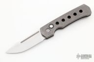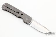 "I am a folder maker. While there will always be the occasional fixed blade, folders are my passion. The steels I enjoy working with include CPM154, ATS-34, 440C, S30V, and Stainless Damascus from Devin Thomas. All of the metal parts on my knives that can be Titanium are Titanium including frames, liners, thumbstuds, bolsters, clips and spacers. Pretty much everything except for the blade. I often anodize a substantial portion of my titanium, and can get a deep green that few makers succeed at. As far as handle materials go, I mostly use Carbon fiber, G10, or Micarta. I use large bronze pivot bushings in all of my folders, and either Nylatron or Bronze washers. All of my parts are made in-house except the screws. I have an old Bridgeport Mill, an older Logan Lathe (1943), a Hardcore grinder, and various other tools, lots of them made by myself. I also do all of my own Heat treating in an EvenHeat Oven." My knives have won several major awards, including Best Tactical Folder at the Blade Show 2011.