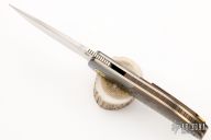 From an early age Herucus had been interested in knives, and as a young boy his pocket money used to go towards buying knives, to the extent that his collection grew to over three hundred knives. In 1998 he made his first knife, and it was not long before this interest in hand crafted knives, and the building of his own machinery, was taking up all of his free time. During this time he developed his own designs of biltong, hunting and liner lock folding knives. Herucus decided to learn from the master knife maker himself, Andre Thorburn, and enrolled for a course in liner lock folding knives. Since then the two families became very close friends and enjoy sitting around a fire in the Bushveld talking about knives. Herucus Blomerus’ talented manufacturing skills and eye for great designs earned him a spot in the Knife Makers Guild of South Africa in the year 2000 and his popularity has skyrocketed ever since. Herucus Blomerus creates beautiful knives that have the look and feel of art knives but still function like work knives. He is a talented knife maker with a lot of experience. He extracts the very best from the materials made available to the customer and to bring them together in a knife which is both an investment and a practical tool. Each component of the knife is fitted perfectly by hand and thus each knife is unique. The smooth action really defines the quality of his work.