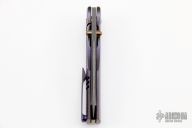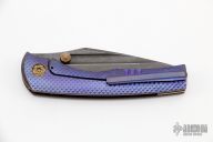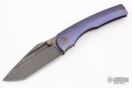 This BBM V2 by Nick Chuprin features an acid-wash blade with anodized titanium thumbstuds. The handle has a 3D milled and anodized titanium frame, anodized titanium pivot, hardware, backspacer and tip up clip with hidden screws. Rides on Skiff Made bearings, nice detent, lockup and blade seating. Comes with a zippered case. New from maker at the 2022 NCKS.