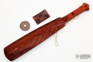 This Bone Breaker features full laser engraved wood construction. Led filled center. Comes with leather tag and wood magnet. New from maker at the Nashville Custom Knife Show 2022.