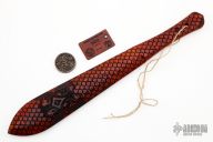 This Bone Breaker features full laser engraved wood construction. Led filled center. Comes with leather tag and wood magnet. New from maker at the Nashville Custom Knife Show 2022.