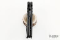 "Jason Brous began his efforts in knifemaking with the benefit of nearly 10 years of experience in CNC machining. His father owns a shop that specializes in the custom machining of high-precision components, mainly for the medical industry. Jason spent a lot of time in his father’s shop while growing up, and by his mid teens was actively helping out with production. His skills and knowledge steadily increased and by the time he was 20 he was a seasoned and very competent machinist. Jason's interest in knives actually began with art - specifically a style called “Bio-mechanical” - as practiced by one of his favorite artists, a Brazilian painter and tattooist named Lango. Biomechanical art (also called Biomech) is a surrealistic style of art that combines elements of machines and robotics with organic animal features. Intrigued by this style of art and its similarity to many fantasy knives, Jason figured that knifemaking would be a natural extension of his metalworking skills and an appropriate medium for his artistic ideas. Although he had no specific training in knifemaking, in 2010 he designed and made his first knife - a fantasy design with a Biomech flavor. Through persistent trial and error, Jason changed his style of knife design to focus on functional simplicity, while still maintaining a strong artistic signature. His early successes came in the form of a series of stout neck knives with dual finger-hole grips. Fans of these “Silent Soldier” neck knives began asking for other expressions of the design. Since then, Jason has created numerous variations including a clip point version, a tanto version and the very popular folder version called the Silent Soldier Flipper."