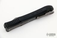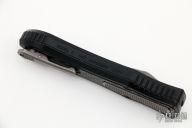 This knife is a Deadlock Model C by Grant and Gavin Hawk. It has a double-edged stonewashed blade. The handle has a carbon fiber and black aluminum frame with a tip down spring clip, titanium. The thumb slide on the handle is also titanium and handle has titanium overlays. Comes with a cloth pouch. Grant and Gavin Hawk set out to create a double action OTF with no blade play.... They did it, NO blade play. Comes with tool, cloth pouch. Excellent Condition.