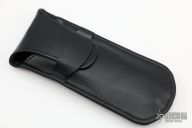 This beautiful Advisor by Stan Wilson features a Damascus recurve blade, fileworked blade spine, fileworked Damascus thumbstud with mammoth tooth inlay. The handle has matching dovetailed Damascus bolsters, front and rear, fileworked and anodized titanium liners, mammoth tooth scales, signature on the interior of backspacer, matching fileworked Damascus backspacer. Smooth action, nice fit and finish, nice detent, lockup and blade seating. Includes a leather case. Excellent condition.