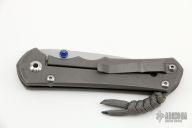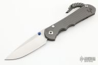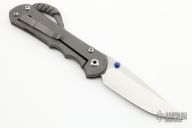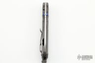This Large Inkosi from Chris Reeve Knives features a tumble finished drop point blade with dual anodized thumb studs and notched thumbrest. The handle is comprised of a bead blasted and laser engraved titanium frame over a single barrel spacer with a matching bead blasted titanium tip up clip. Includes original box, paperwork, tools, cloth, and leather slip. Has a couple light scuffs/marks on the frame. Excellent condition otherwise. Maker's card dated March 16, 2022. S45VN Blade Steel.
