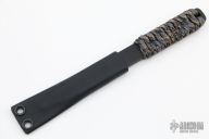 In 1988, he began making specialized knives for use by the military. This turned out to be fortunate turn of events, both for Mick and for the knife using world at large. Mick’s approach was to not get burdened by the weight of past designs. He started with a tabula rasa, a clean slate, informed only by his own experiences and knowledge of what a soldier needed in a knife. The knives he made didn’t look like the hunter-inspired knives seen in most PXs; instead they were almost brutish in their functionality: beefy, solid, and with unbreakable ¼” stock full tangs. These knives were the first indication of his innovative approach: in addition to their utilitarian design, the knives carried a subdued finish and subdued sheaths. No one carrying a Strider knife was going to be spotted because of sunlight glinting off of polished steel or a glossy leather sheath. Soldiers, policemen, and other men going into harm’s way couldn’t buy them fast enough. Mick sampled some good ideas, but made them great. For instance, he was not the first to wrap a knife handle with paracord, but he was the first to do it in a way that was tough enough for sustained infantry use. His knife line grew over the following years to include different varieties of fixed blades, all distinctive and many with specialized uses. But constant in all of them was a disregard for convention, and a desire to try new ideas. An example of this was the Ajax – it featured a very wide blade surface clearly designed to inflict damage. It drew on the weapons carried by Roman legionnaires, yet was modern and usable in the 21stCentury battlefield. Mick also worked on his technical skills, always striving to become better at the physical craft. At the 2002 Blade Show, a group of the best tactical knifemakers in the country decided to compete with each other to produce the most innovative and interesting fixed “battle blade” at the show. Mick’s entry, an incredible integral knife made out of ½” titanium stock with a zippered composite blade, gorgeous handles, and integral guard was the unanimous winner, and effectively retired the competition.