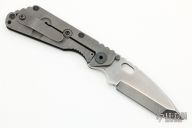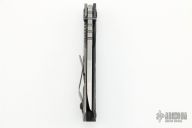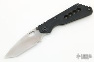 This Duane Dwyer Custom SNG CC features a chisel ground tanto blade with thumb hole and dual studs. The handle has a black G-10 and bead blasted titanium frame with matching titanium clip. Notches on thumbrest, rear of handle, and lockup. Includes Hinderer "Lock Bar Stabilizer" for maximum reverse lock retention. Nice detent, lockup and blade seating. Has some light scuffs and scratches, has been resharpened, otherwise good condition.