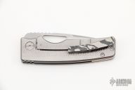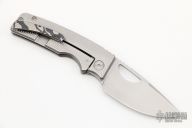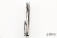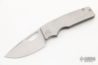 This knife by the OZ Machine Company features a stonewashed Magnacut blade with a false top edge, thumbhole and notched thumbrest.  The handle features a Putter milled titanium frame with a Zircuti tip up pocket clip and satin titanium backspacer.  Includes box and COA dated 11-9-22. New condition.