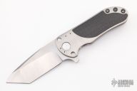 This T95 Flipper by Direware Knives features a satin finished tanto blade with swedge, notched thumbrest and flipper. The handle is comprised of a titanium frame with carbon fiber inlays, notched titanium backspacer with a machined titanium tip up clip. Dead center blade seating, crisp detent and solid lock up. Includes original packaging. Has a couple light scuffs, great condition otherwise.