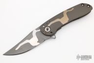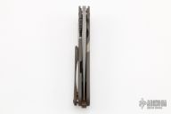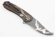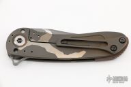This Tailwhip V2 Flipper by Direware Custom Knives features a two tone finished blade with swedge and flipper. The handle is comprised of two tone satin/bead blast finished titanium frame with a matching tip up clip. Copper collars and backspacer. Comes with box and soft pouch. Excellent condition.