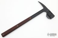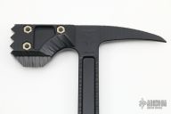 Snuggles, the modern War Hammer Breaching Tool follows our mantra, one tool many tasks. It combines bad ass looks with formidable capability in one package. At a CQB length of 18" it can used in tight areas where traditional longer tools may have a tough time. It is a tool Ideally suited for a patrol car or emergency vehicle, providing you a quick action tool for breaching a door or window. The large 8 5/8" head features a "meat tenderizer" style head with a tapered beard, and the other end features a 3 13/16" distal taper spike for puncturing.