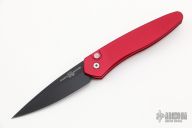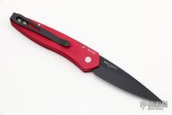 This Newport by ProTech Knives features a black spearpoint blade and red aluminum handle with tip up black stainless steel clip. Comes with original box and papers. #15 of 100. New from maker.