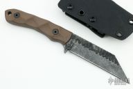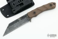 This GP3 by Stroup Knives features a dark tumbled wharncliffe blade with sculpted flats and a full tang construction.  .161" Blade Stock.  1.054" Blade Depth.  The handle features sculpted G10 scales.  Includes a kydex sheath with a Tek-Lok.  Includes the original box.  New from Maker!