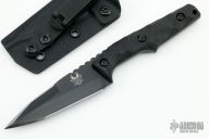 This Huginn EDC by Bawidamann Blades was named after Odin’s Raven. It features custom black cerakote finish on the blade, has notched thumbrest, .155" blade stock and 1.215" blade depth, full tang construction. The handle has IM Bawidamann Chunked Pattern Carbon Fiber scales (proprietary Carbon fiber composite). Comes ready to carry with the Bawidamann Uberscabbard. New from maker.