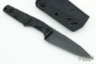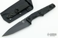 This Huginn EDC by Bawidamann Blades was named after Odin’s Raven. It features custom black cerakote finish on the blade, has notched thumbrest, .155" blade stock and 1.215" blade depth, full tang construction. The handle has IM Bawidamann Chunked Pattern Carbon Fiber scales (proprietary Carbon fiber composite). Comes ready to carry with the Bawidamann Uberscabbard. New from maker.