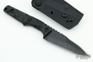 This Huginn EDC by Bawidamann Blades was named after Odin’s Raven. It features custom acid etched and black cerakote finish on the blade, has notched thumbrest, .155" blade stock and 1.215" blade depth, full tang construction. The handle has IM Bawidamann Chunked Pattern Carbon Fiber scales (proprietary Carbon fiber composite). Comes ready to carry with the Bawidamann Uberscabbard. New from maker.