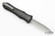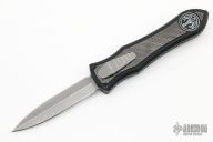 This knife is a Deadlock Model C by Grant and Gavin Hawk. It has a double-edged stonewashed blade. The handle has a carbon fiber and black aluminum frame with a tip down spring clip, titanium. The thumb slide on the handle is also titanium and handle has titanium overlays. Comes with a cloth pouch. Grant and Gavin Hawk set out to create a double action OTF with no blade play.... They did it, NO blade play. Comes with tool, cloth pouch. Excellent Condition.
