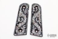 Custom 1911 Grips. Wood backing with painted mother of pearl overylays. Excellent condition.