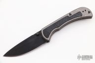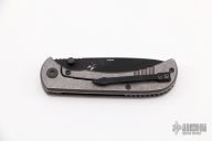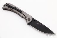 This Cav Framelock by Half Face Blades features a black blade with notched thumbrest and dual thumbstuds. The handle has a stonewashed titanium frame with black G-10 inlay, black titanium backspacer and tip up clip that is reversible. Has a couple light scuffs, otherwise excellent condition. Comes with original box and papers.