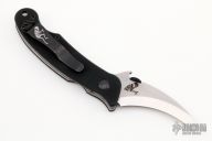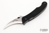 This Elvia by Emerson Knives features a stonewashed hawkbill blade with a black thumbdisc. The handle has black G-10 scales, titanium liners and a black stainless steel tip up clip. Comes with original box and papers. Excellent condition. #0015. Comes with a Sneak Reaper clip installed, comes with original clip as well.