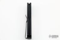 This Magic BR-1 Bolster Release Automatic from Pro-Tech Knives features a drop point black 154-CM blade with swedge. The handle features a black aluminum frame with checkered bolster and ivory paper micarta inlay on the "A" side of the handle. Black coated stainless steel clip is positioned for tip up carry. Lanyard hole in the pommel. Comes with original box. Excellent condition.