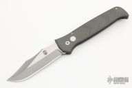 This SOB by Rob Dalton features a bead blast blade. Anodized GREY aluminum handle with a tip up bead blasted titanium clip. Marked 097 near the butt of the handle. Has a scuff near the front of the handle, otherwise excellent condition.