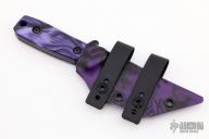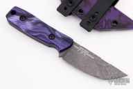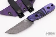 This Purple Haze Edition by Tactical Everyday Dad features an acid tumbled blade with notched thumbrest, .152" blade stock and 1.173" blade depth, full tang construction. The handle has purple haze kirinite scales with black G-10 liners. Comes with a kydex sheath, original box and papers. Excellent condition.