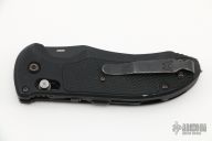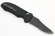 The Triage Auto has an AXIS lock with pull-release and an integrated safety. The hook-shaped safety cutter features automatic opening as well with a slide release/lock. The black anodized aluminum handle is outfitted with black G-10 inlays and a carbide glass breaker tip. The N680 stainless steel blade is black finished with a plain cutting edge.