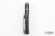 This Production Fuse by Jonas Iglesias features a satin finished blade with dual thumbstuds. The handle has green canvas micarta scales with bead blasted titanium liners and tip up clip with hidden screws, notched green canvas micarta backspacer. Rides on bearings, nice detent, lockup and blade seating. Comes with original zippered case. Excellent condition.