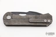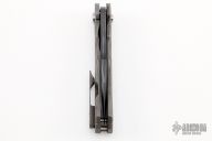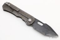 This GF2 by DSK Tactical Knives features a San Mai Damascus blade with thumbhole. The handle has a carved and anodized titanium frame with tip up clip. Nice detent, lockup and blade seating. Excellent condition.