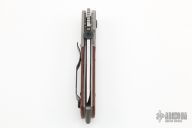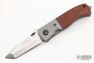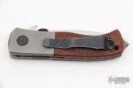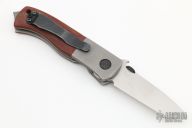 This CQC-7 PoBoy has a tanto blade with notched thumbrest, thumbdisc and wave feature. The handle has dovetailed bead blasted titanium bolster, micarta scales, titanium liners, tip up stainless steel clip.  Titanium backspacer.  Has some scuffs/scratches on the blade and handle otherwise the knife is in excellent condition.
