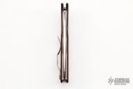 The Pakkawood material that makes up the scales combines the durability and stability of a phenolic laminate with the rich beauty of natural wood. Unlike natural wood, you won't have to worry so much about Pakkawood shrinking, expanding, or cracking. It is also much better suited to moisture than standard woods. Full stainless steel liners, backspacer, and lock back complete this durable little knife. A David Boye dent on the lock release makes it less susceptible to accidental disengagement.