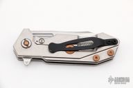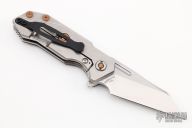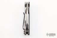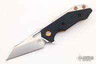 This Half Track from Hinderer Knives features a stonewash finished Magnacut blade with fullers, notched thumbrest and flipper. The handle has a stonewash finished titanium frame with a black G-10 scale. Titanium clip is positioned for tip up, right hand carry. Comes with original box and extra hardware. Excellent condition.